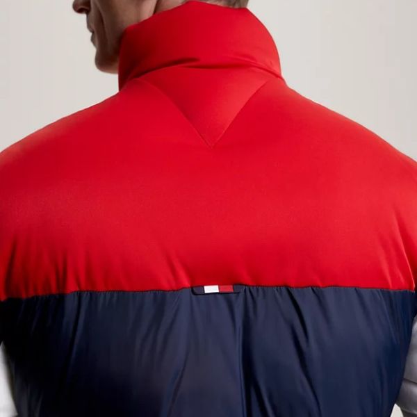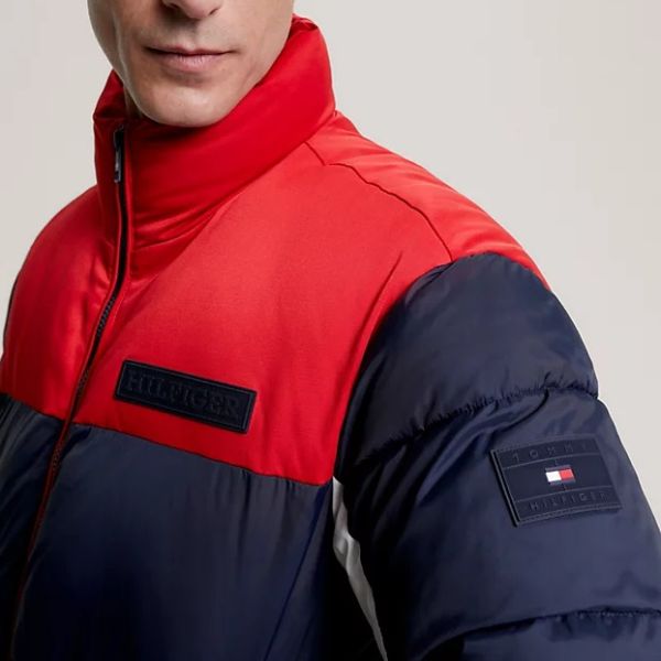 • De puffer van Tommy Hilfiger in de kleuren navy, rood en wit is gemaakt van nylon.